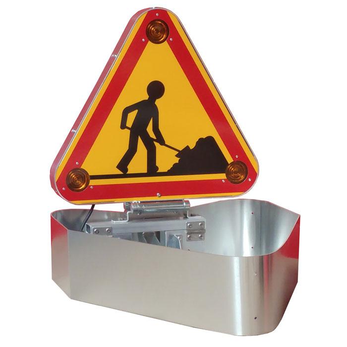 - équipé de 6 feux R2 couleur ambre (3 feux pour le triangle simple-face)